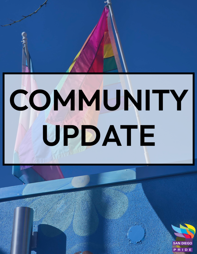 April 24, 2026 Dear Community, As a diverse community representing many intersectional identities, San Diego Pride unequivocally reaffirms its condemnation of antisemitism, Islamophobia, and anti-LGBTQIA+ rhetoric. San Diego Pride’s mission, vision, and Pillars of Justice call us to show up for justice and liberation.…